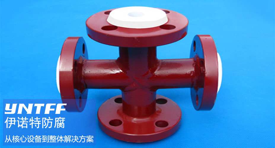 襯氟四通鋼襯四氟四通為模壓工藝一次成型,我公司生產出的鋼襯四氟四通有:密度高、表面光滑、厚度均勻等特點?!懊芏雀摺笨梢苑乐菇橘|滲透,并且在使用中不易變形;“表面光滑”使得介質的流動阻力小,有效防止粘滯;“厚度均勻”使得鋼襯四氟管道強度高,且在翻邊處密封性能好。適用于各種濃度的酸、堿、強氧化劑、王水等強腐蝕介質