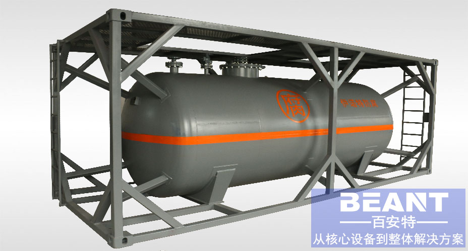 用于裝運酒類、油類、液體食品、化學藥品等液體貨物的集裝箱。主要由液罐和框架構成。液罐為橢圓形或近似球形,采用雙層結構。內壁采用不銹鋼;或用其他剛性材料制成,但需涂布一層環(huán)氧樹脂,防止液體貨物的腐蝕。外壁采用保溫材料。一般罐頂有圓形的裝貨口,罐底有卸貨閥。有高壓液罐、低壓液罐、保溫液罐、帶加熱裝置液罐等數種。框架采用高強度鋼材制成,液罐放在框架中間。罐式集裝箱的搬運操作、裝貨、卸貨、貯藏均需一定專門場所,并配備專門的消防安全設備。